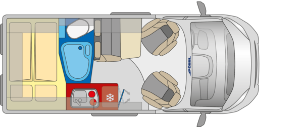 Bakre bäddsäng: 1.960 x 1.320/1.170 mm