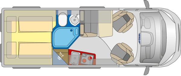 Bakre bäddsäng: 1.980/1.930 x 1.900 mm