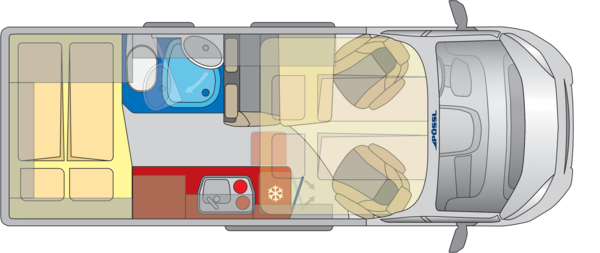 Bakre bäddsäng: 1.950 x 1.400 / 1.200 mm