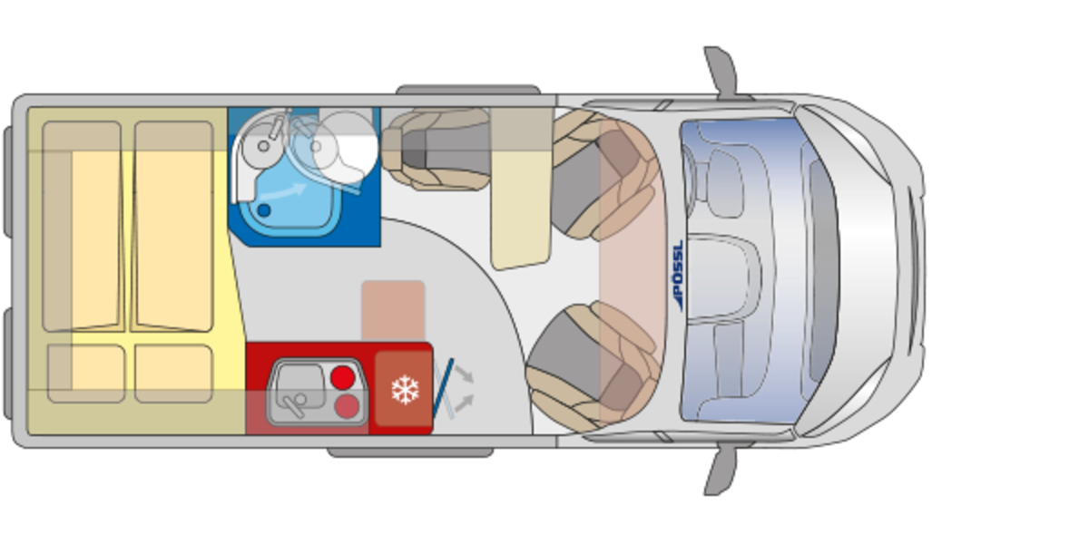 Bakre bäddsäng: 1.960 x 1.200/1.410 mm