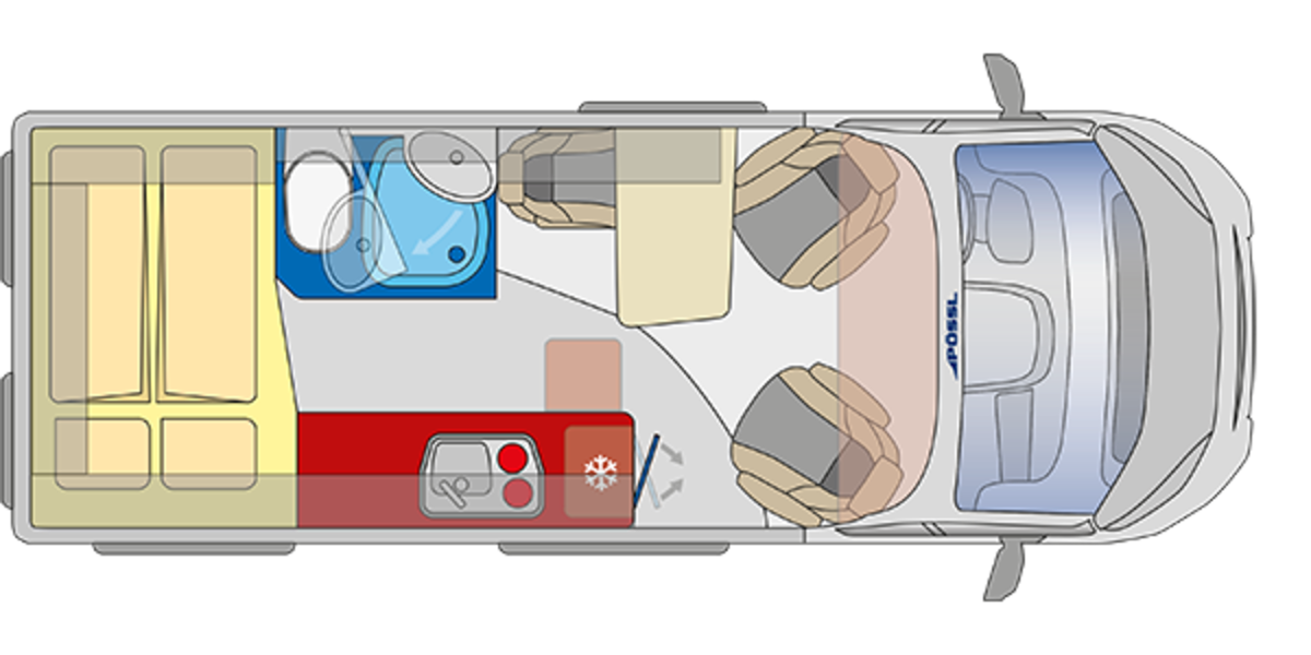 Bakre bäddsäng: 1.960 x 1.560/1.430 mm